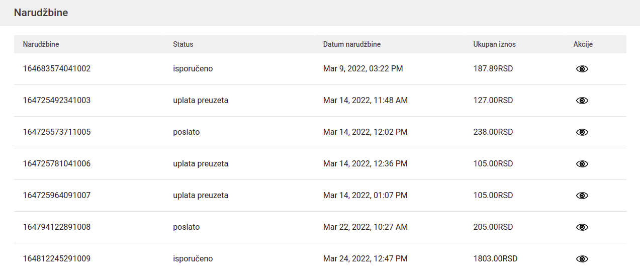 Vaši klijenti mogu da kreiraju nalog u Vašoj prodavnici. Ovo će im pomoći da prate svoje porudžbine i zadrže svoju korpu ako su prijavljeni na drugom uređaju. Pored prednosti za Vaše klijente, ovo i Vama pomaže da saznate više o svojim klijentima i potencijalnim kupcima. Nakon što se kupac registruje u Vašoj prodavnici, možete ga lako videti u odeljku Kupci na administrativnoj tabli. Možete ih sve pretraživati po različitim kriterijumima. Tamo možete pronaći njihove osnovne podatke, ali i pored toga, šta imaju u svojim korpama i koje su njihove narudžbine, koliko je bilo uspešnih a koliko neuspešnih.