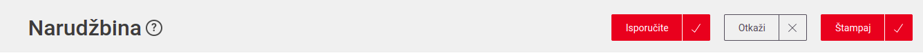 Nakon evidentiranja uplate, Vaša narudžbina je spremna za isporuku. U slučaju da klijent bira plaćanje pouzećem, preskaču se koraci sa uplatom i narudžbina se odmah obrađuje i šalje. Kada budete spremni da pošaljete svoju narudžbinu, jednostavno kliknite na dugme „Isporučite“ u gornjem desnom uglu ekrana (slika).