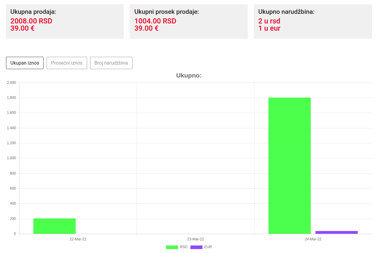 Na ovaj način se prati prodaja, a statistika će biti prikazana u dnu stranice (slika). Prikaz statistike može biti podesiv na godišnjem, mesečnom i dnevnom nivou. Pored toga, može se prikazati celokupno vreme ili prodaja samo u određenom periodu. Praćenje Vašeg partnera moguće je i preko grupe kupona, sa kojim ga povežete.