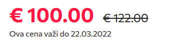 Svaki proizvod ima regularnu cenu po valuti, koja je neophodna za unos prilikom kreiranja. Pored regularne, postoji mogućnost definisanja promotivne cene. Promotivna cena je snižena cena proizvoda koja može biti aktivna u određenom vremenskom periodu definisanjem "Promotivna cena od“ i „Promotivna cena do“. Ako definišete oba datuma, posebna cena će biti aktivna samo u periodu između ta dva datuma. Ukoliko ne definišete ove datume, posebna cena će biti aktivna sve dok je prisutan iznos u podešavanjima Vašeg proizvoda. S druge strane, ako definišete samo „Promotivna cena od“, posebna cena će biti aktivna od tog datuma. Ako izaberete da definišete „Promotivna cena do“, posebna cena će biti aktivna do dana koji ste definisali (slika). Da biste koristili specijalnu cenu, obavezno je popuniti polje „Promotivna cena“, inače definisanje datuma neće uticati na cene proizvoda. Za više informacija o cenama poreza na proizvode pročitajte odeljak Poreska konfiguracija.